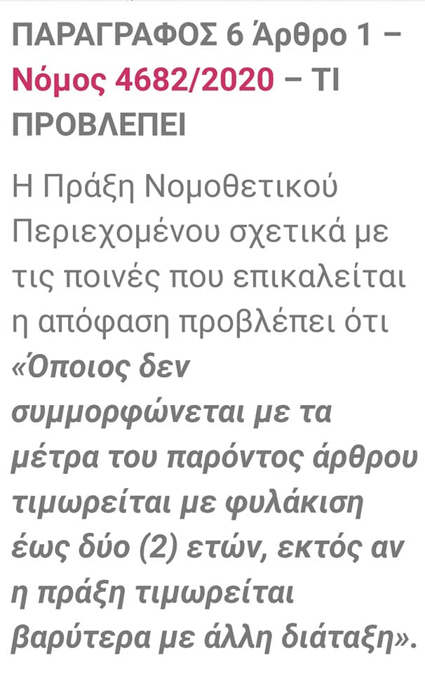 Όποιος δεν συμμορφώνεται με τα μέτρα του παρόντος άρθρου τιμωρείται με φυλάκιση έως δύο (2) ετών, εκτός αν η πράξη τιμωρείται βαρύτερα με άλλη διάταξη».
